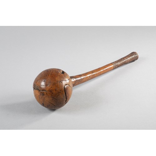 The warrior on the left is using a composite bow to shoot an arrow at the central, headless figure who is also being attacked by the knife wielding warrior from the right. All three are wearing lamellar body armor made of walrus-tusk or walrus or seal-rib slats. Thule culture. c. 1000 - 1600 AD. 17,8 cm.