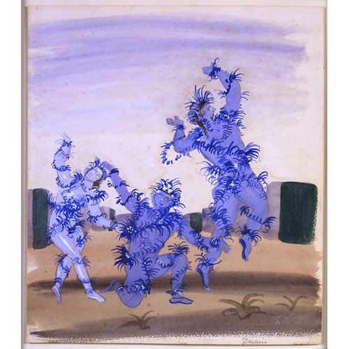 Pierced frieze decorated on both sides by an Apollo mask flanked by beribboned drapery swags and bucrania at the corners. Four fluted legs with leaf-tip carving and joined by a stretcher mounted with a pierced straw-basket attached with drapery swags.