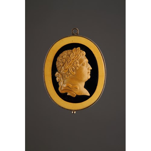A Fine English Oval Snuff Box with Cut and Gilded Horn Lid Decorated with a Trophy of Arms